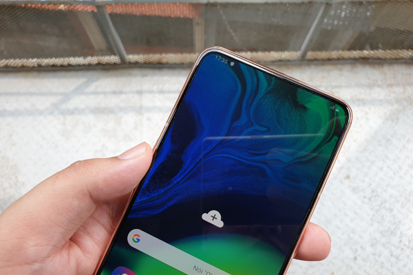 Điểm mạnh của A80 là chiếc điện thoại này sở hữu màn hình có kích thước rất lớn (6.7 inch, độ phân giải Full HD+). Máy được trang bị tấm nền Super AMOLED cho chất lượng hiển thị với màu sắc sặc sỡ và nịnh mắt.
