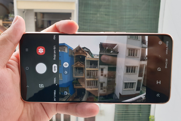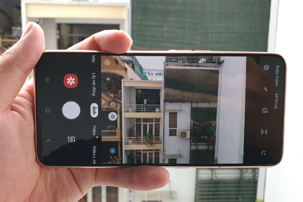 Camera cũng là một điểm đáng chú ý của Galaxy A80. Mẫu điện thoại này có máy ảnh với 2 mức tiêu cự là bình thường và siêu rộng. Trong hình là góc chụp của máy khi ở chế độ bình thường.