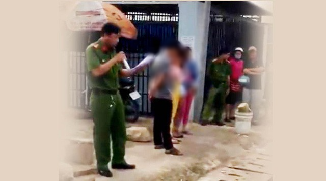 Hôm trước cán bộ công an đã phát loa đọc quyết định xử phạt nêu rõ tên tuổi, nơi cư trú và hành vi vi phạm cụ thể của từng người vi phạm(Mua bán dâm).