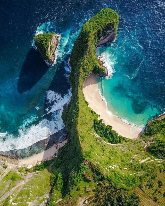 Bãi biển Kelingking nằm trên đảo Nusa Penida, là một trong những bãi biển thu hút nhiều khách du lịch mạo hiểm nhất trên thế giới. Điều đặc biệt ở đây là vách núi dựng bên bãi biển có hình dáng khá tương đồng với một chú khủng long bạo chúa T-rex phơi mình dưới ánh nắng, từ trên cao nhìn xuống vô cùng đẹp và kỳ vĩ.