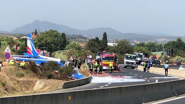 Một máy bay thuộc đội bay nhào lộn của Không quân Pháp trong khi biểu diễn hạ cánh bất thành đã rơi xuống đường cao tốc ở khu vực phía nam nước này.
