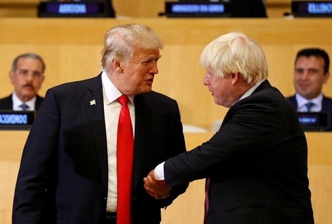 Ông Borris Johnson và Tổng thống Mỹ Donald Trump tại cuộc gặp ở Liên Hợp quốc năm 2017. (Ảnh: AP)