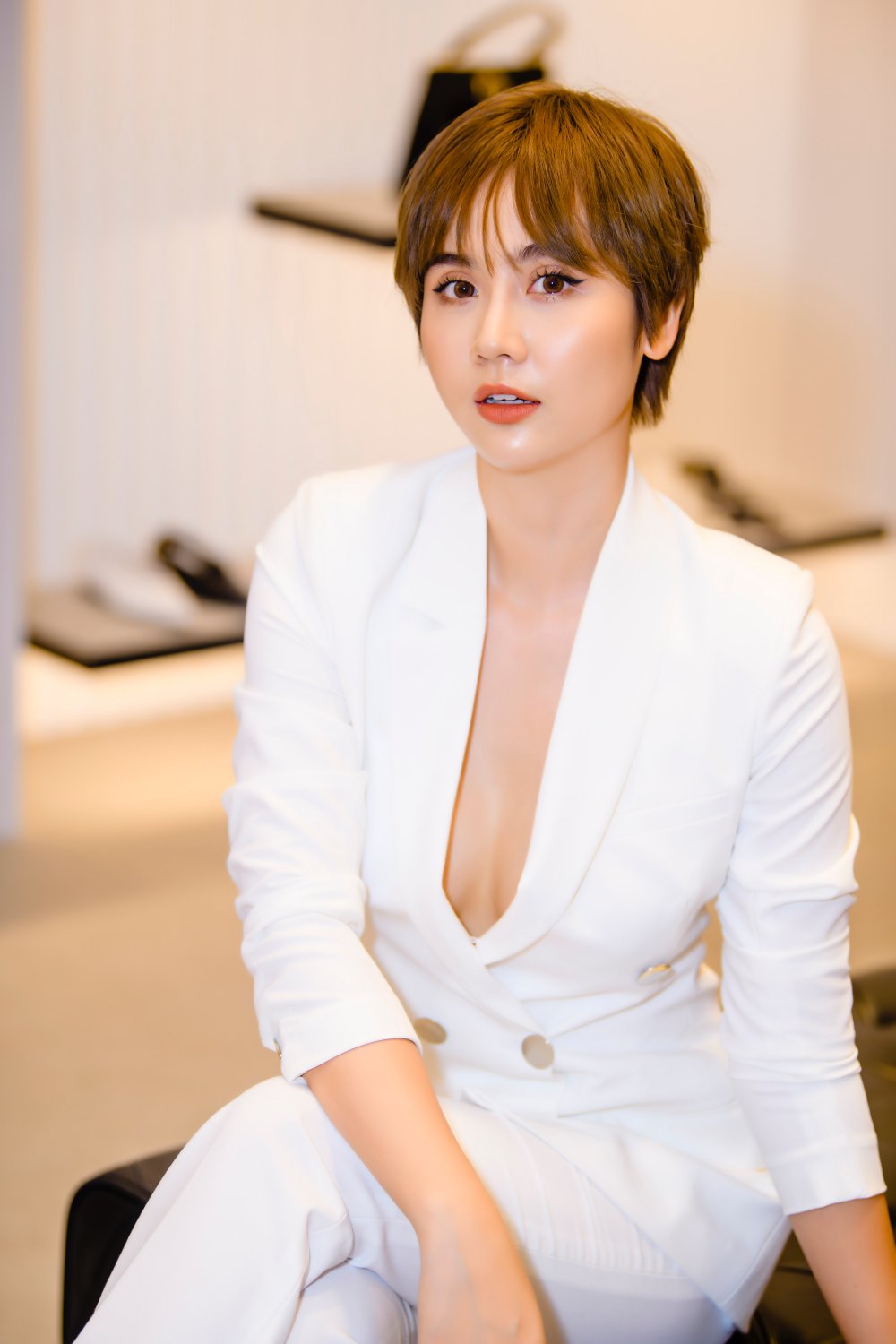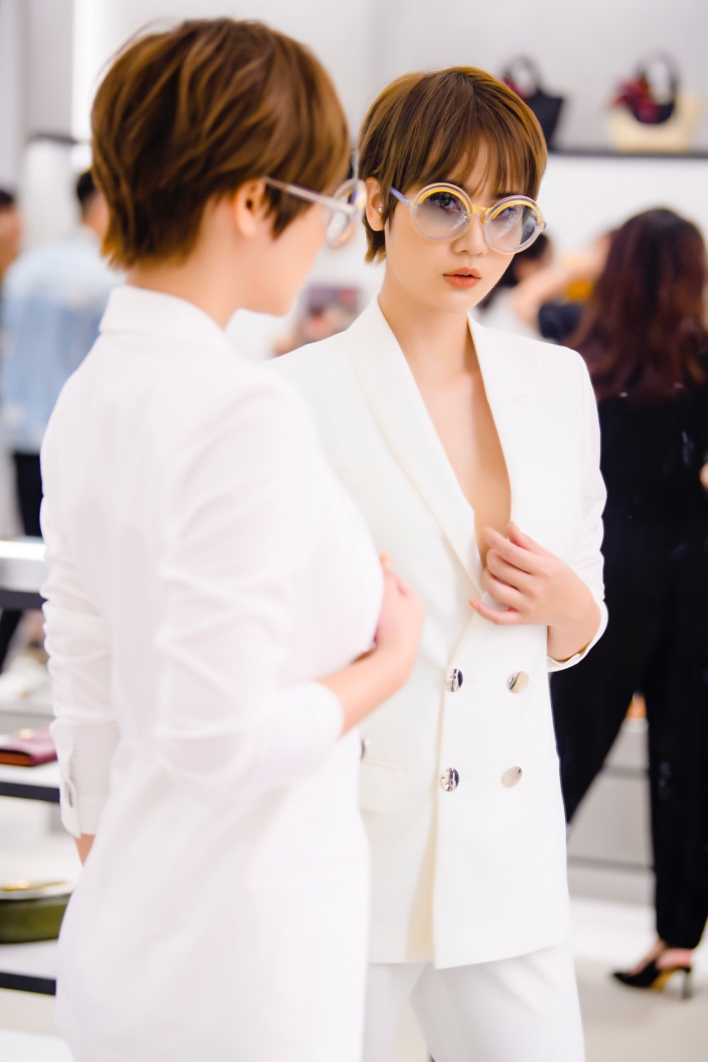 Huyền Lizze bất ngờ nam tính, hút mọi chú ý sau ly hôn chồng đại gia. Cô chọn trang phục vest màu trắng không nội y, thêm nữa Huyền Lizze lại có mái tóc ngắn cùng phong cách tomboy nam tính. Cô thu hút mọi ánh mắt.