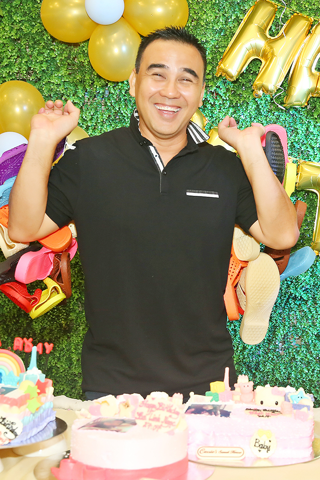 Nữ ca sĩ còn khiến mọi người ngỡ ngàng khi tặng quà sinh nhật MC Quyền Linh là 10 đôi dép tổ ong đủ màu sắc.