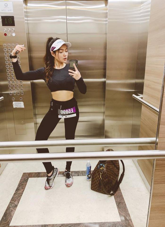 Ngoài việc tập gym, người đẹp cũng rất tích cực chạy bộ, leo núi... để nâng cao sức khỏe và cải thiện thân hình.