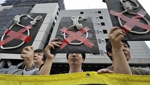 Các thành viên của tổ chức Ân xá Quốc tế biểu tình phản đối án tử hình tại Tokyo năm 2009. Ảnh: AFP