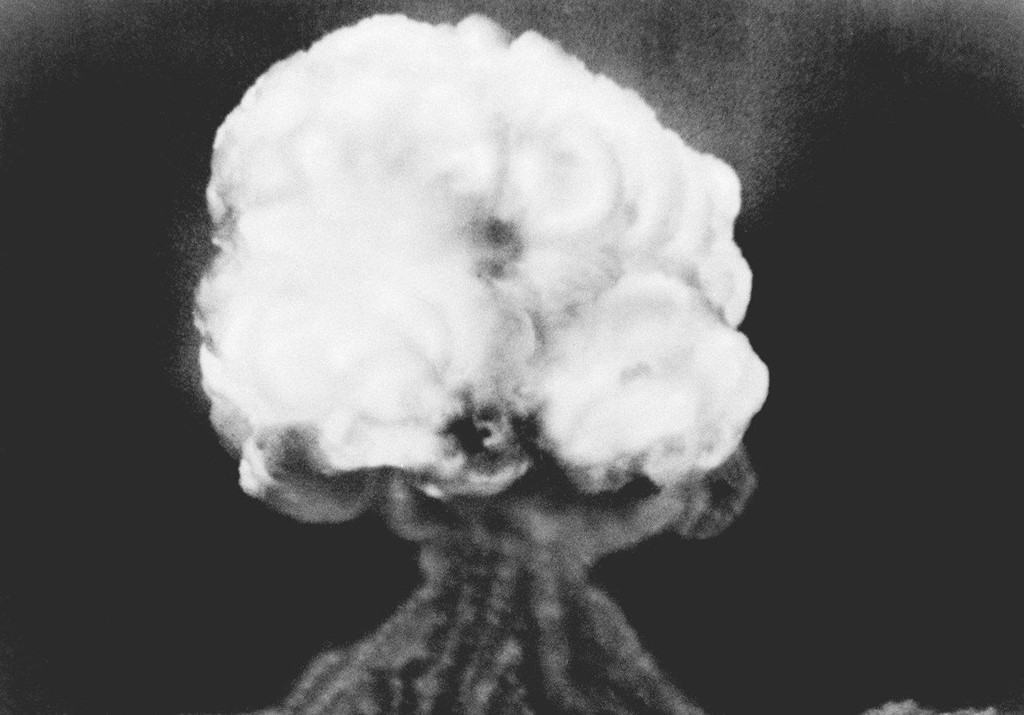 Một bức ảnh tháng 7/1945 cho thấy đám mây h́nh nấm của vụ nổ nguyên tử đầu tiên trên thế giới, tại khu thử nghiệm Trinity gần Alamogordo, New Mexico. Ảnh: AP.
