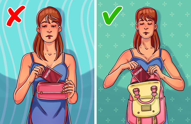 Hầu như tất cả mọi người đều có xu hướng đặt hết giấy tờ quan trọng của mình như passport, chứng minh nhân dân vào chiếc túi nhỏ để chắc chắn rằng chúng luôn ở bên người. Tuy nhiên, càng nhiều túi lỉnh kỉnh thì sẽ càng làm tăng nguy cơ bị mất vì khó kiểm soát. Nhiều người thường để quên những chiếc túi với tiền bạc, giấy tờ quan trọng thế này ở quán cafe trong sân bay, hay trên taxi. Cách tốt nhất là bạn cứ đặt chúng vào một ngăn riêng trong balo hay túi lớn hơn để tránh mất mát, cũng đừng nên để lẫn lộn với tiền bạc, tư trang, hoặc cất chúng quá kỹ.