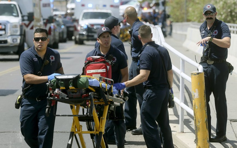 Nhân viên y tế làm việc tại nơi xảy ra vụ xả súng thứ 2 trong tuần ở El Paso, Texas. Ảnh: AP.