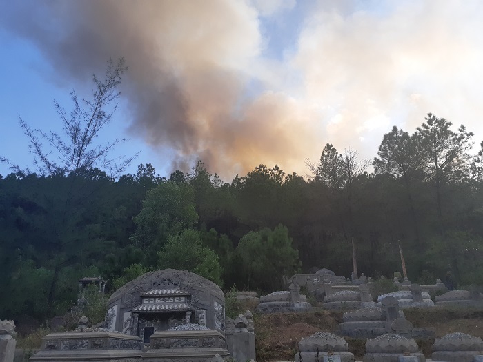 Đồi thông cạnh thao trường bắn của Ban chỉ huy quân sự TP Huế bốc cháy. Ngọn lửa nhanh chóng lan rộng sang các khu vực khác. Đe dọa cả khu huấn luyện quân đội.
