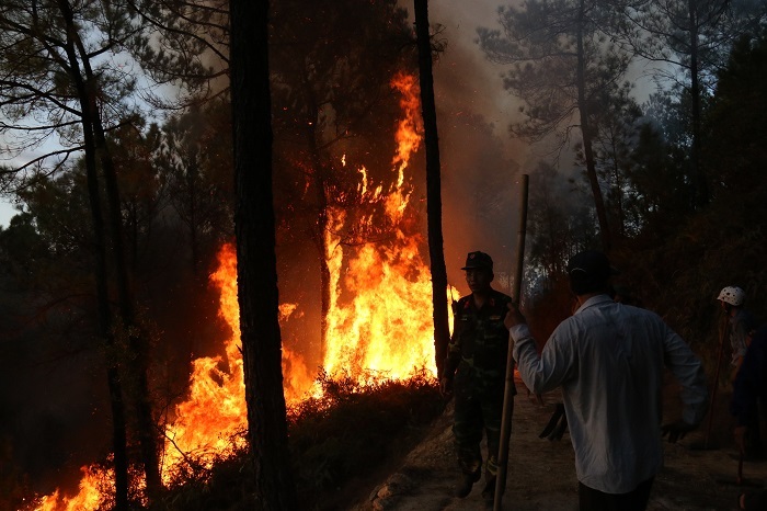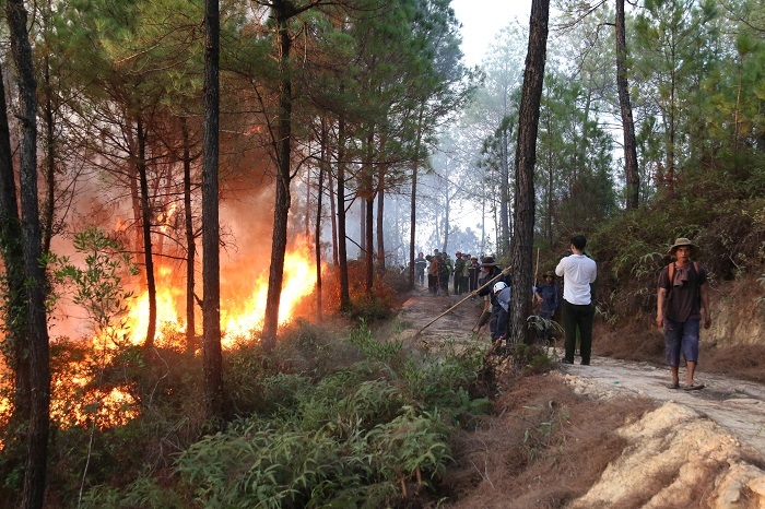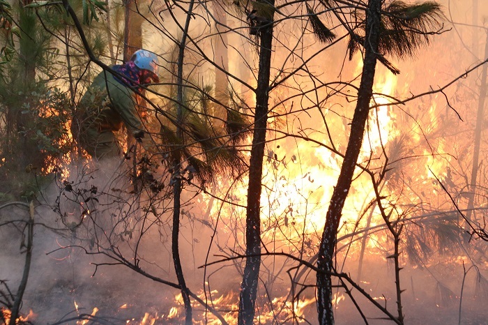 Gặp thời tiết nắng nóng, ngọn lửa nhanh chóng bùng phát, trong phút chốc thiêu rụi diện tích lớn rừng thông đặc dụng, đe dọa an toàn khu vực thao trường bắn của quân đội.