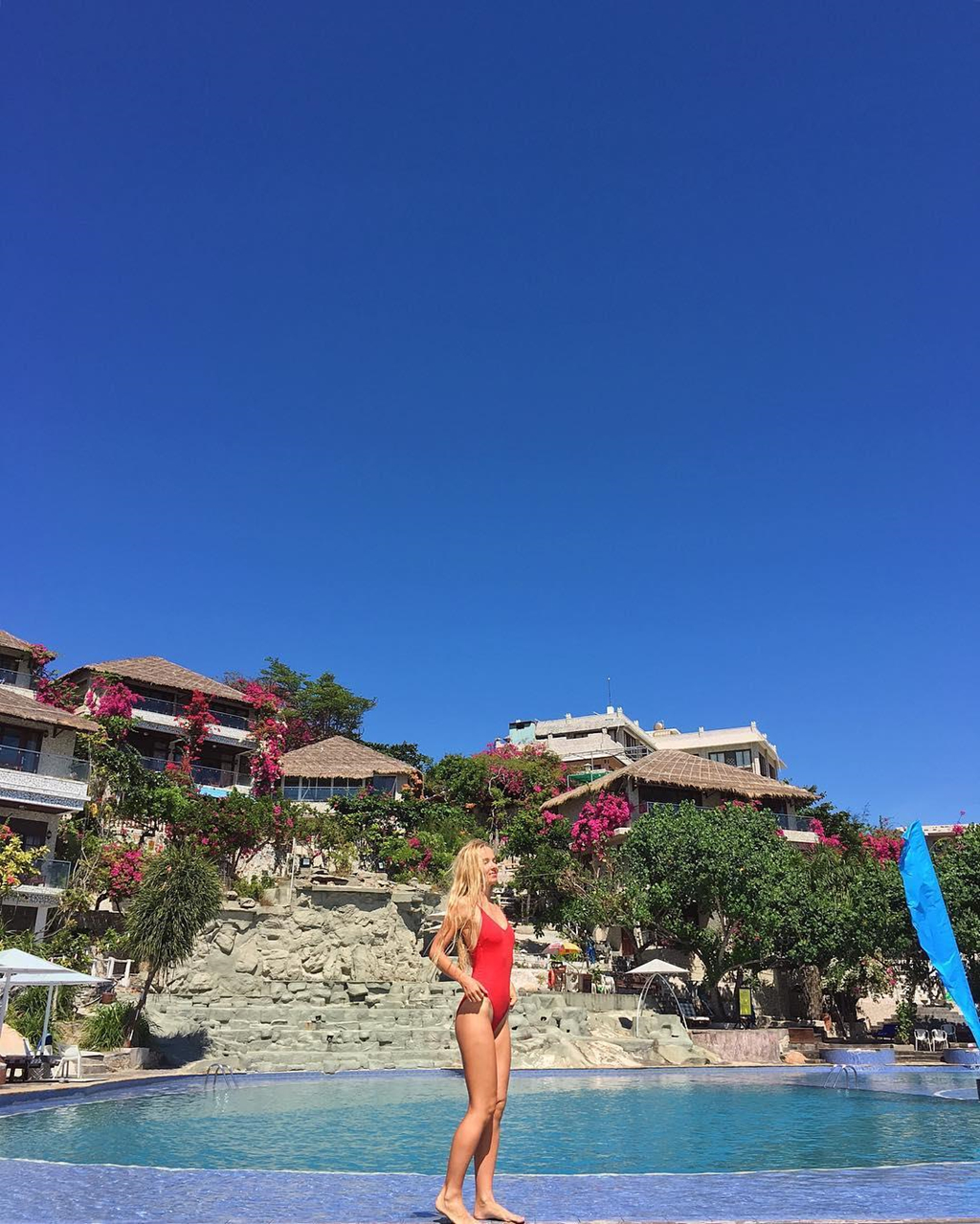 Hồ bơi vô cực sát biển là chốn dừng chân yêu thích của các tín đồ sống ảo. Chỉ cần diện những bộ bikini màu sắc, bạn sẽ thu về ngay bộ ảnh check-in nóng bỏng. Phòng ở đây có giá từ 2 triệu đồng/đêm. Ảnh: Wendy.nguyen.0810, alinabalerina.