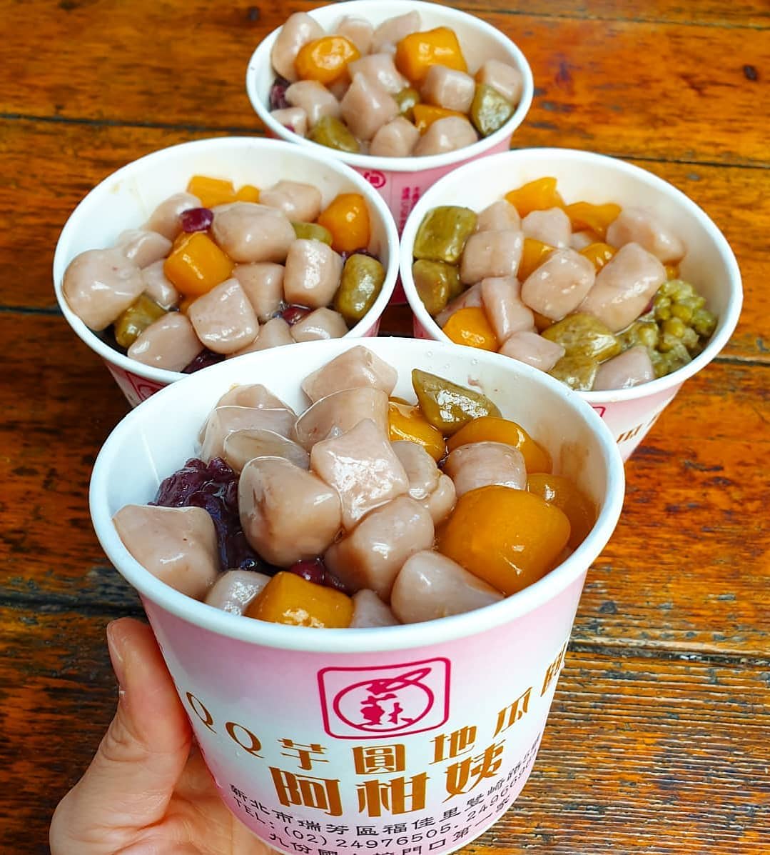 Món khoai môn viên có mặt ở khắp Đài Loan, bạn có thể tìm thấy món tráng miệng truyền thống này ở hầu hết các khu vực trong cả nước. Món ăn này thường được ăn kèm với đá bào hoặc như món súp tráng miệng ấm áp với những viên khoai môn mềm mịn, ngọt ngào, thơm ngon. Mặc dù không phải được phát minh ở Jiufen nhưng món ăn này ngon nhất được bán tại quán bà Lai Taro Balls ở phố cổ Jishan ở thành phố Đài Bắc.