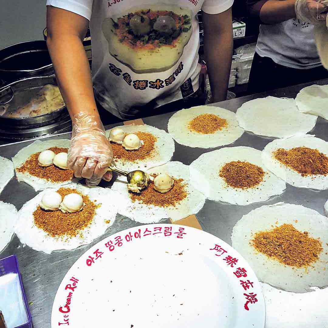 Có nguồn gốc từ Nghia Lan, A-Zhu, kem cuộn đậu phộng ngon nhất hiện được bán ở Jishan Street ở thành phố Đài Bắc. Kem trông giống như chiếc nem bao gồm hai muỗng kem khoai môn, đậu phộng nghiền và nhánh rau mùi. Kem mịn và dẻo, đậu phộng mặn tương phản và cân bằng vị giác, với rau mùi mang lại hương vị độc đáo.