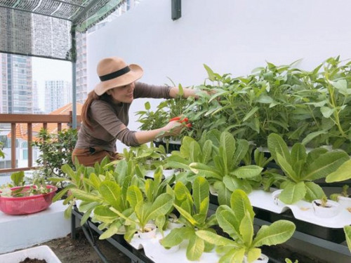 Là một doanh nhân thành đạt và bận rộn với nhiều công việc nhưng Hoa hậu Quý bà Phương Lê vẫn dành thời gian cuối tuần để chăm sóc cũng như thu hoạch rau sạch trên sân thượng của nhà mình.