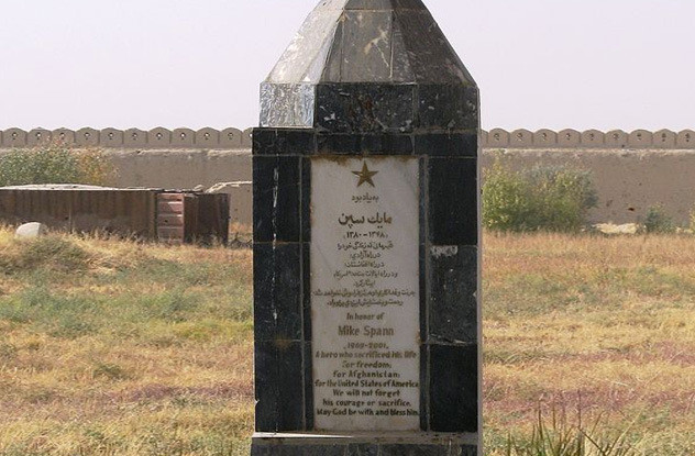 Bia tưởng niệm nhân viên CIA Mike Spann thiệt mạng trong cuộc nổi dậy của tù nhân ở nhà tù Qala-i-Jangi, Afghanistan. Ảnh: Wikipedia.