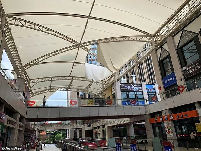 Được biết, Trung tâm thương mại Huixing được khánh thành vào năm 2016. Trung tâm này có một khoảng sân mở được che phủ bằng tấm vải bạt lớn.