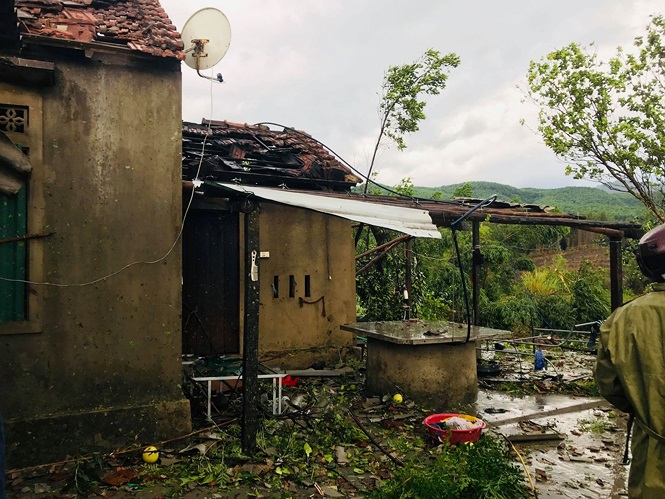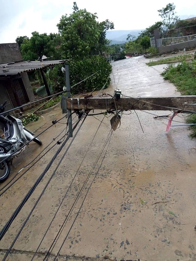 Hệ thống cột điện, cây cối và hoa màu bị gió quật ngã. “Nghe thông tin bão ngày mai mới vào đến đất liền. Khi tôi đang ở trong nhà thấy gió thổi mạnh, mái ngói đổ sập xuống nên cứ nghĩ bão số 4 vào. May mắn mọi người không ai bị thương”, bà Doãn Thị Phương, trú tại thông Hoa Tiến cho biết.