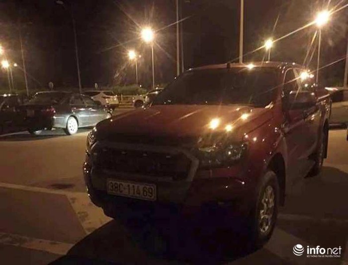 Chiếc xe bán tải Ford Ranger, BKS 38C-114.69 đậu tại khu vực để xe sân bay được cho là của ông Tr.