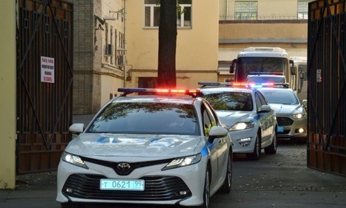 Xe cảnh sát hộ tống xe buýt chở tù nhân rời khỏi nhà tù Lefortovo, Moskva, Nga, hôm nay. Ảnh: AFP.