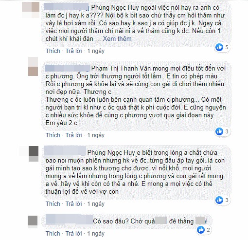 Tuy nhiên, ngay khi bài viết của Ốc Thanh Vân được đăng tải, cộng đồng mạng đổ dồn sự chú ý vào bình luận của Phùng Ngọc Huy - bố đẻ của bé Lavie - con gái Mai Phương: "Có sao không vậy Ốc?". Trước dòng bình luận này của nam diễn viên, nhiều khán giả tỏ ra phẫn nộ, bức xúc trước lời hỏi thăm có phần hời hợt của anh.