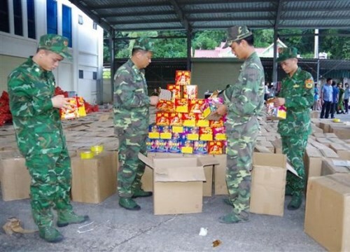 Nhà chức trách kiểm đếm số pháo bị thu giữ. Ảnh: B.M