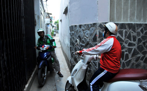Ở Sài Gòn có nhiều con hẻm chỉ vừa đủ cho hai chiếc xe máy đi hai chiều phải lách khéo qua nhau và có những con hẻm xe máy chẳng thể đi vào được. Người dân mua chiếc tủ lạnh nhưng không thể mang vào nhà.