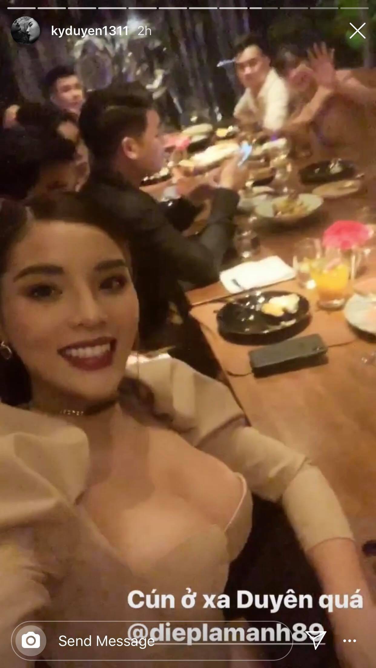 Kỳ Duyên chọn cho mình một thiết kế váy nude tay phồng sang chảnh để tới dự sinh nhật của Diệp Lâm Anh. Thiết kế có phần cup ngực gợi cảm, ôm trọn vòng 1 khủng của Kỳ Duyên.