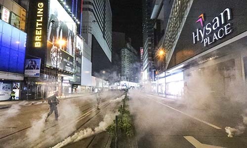 Cảnh sát bắn đạn hơi cay để trấn áp người biểu tình ở Causeway Bay tối 8/9. Ảnh: SCMP.