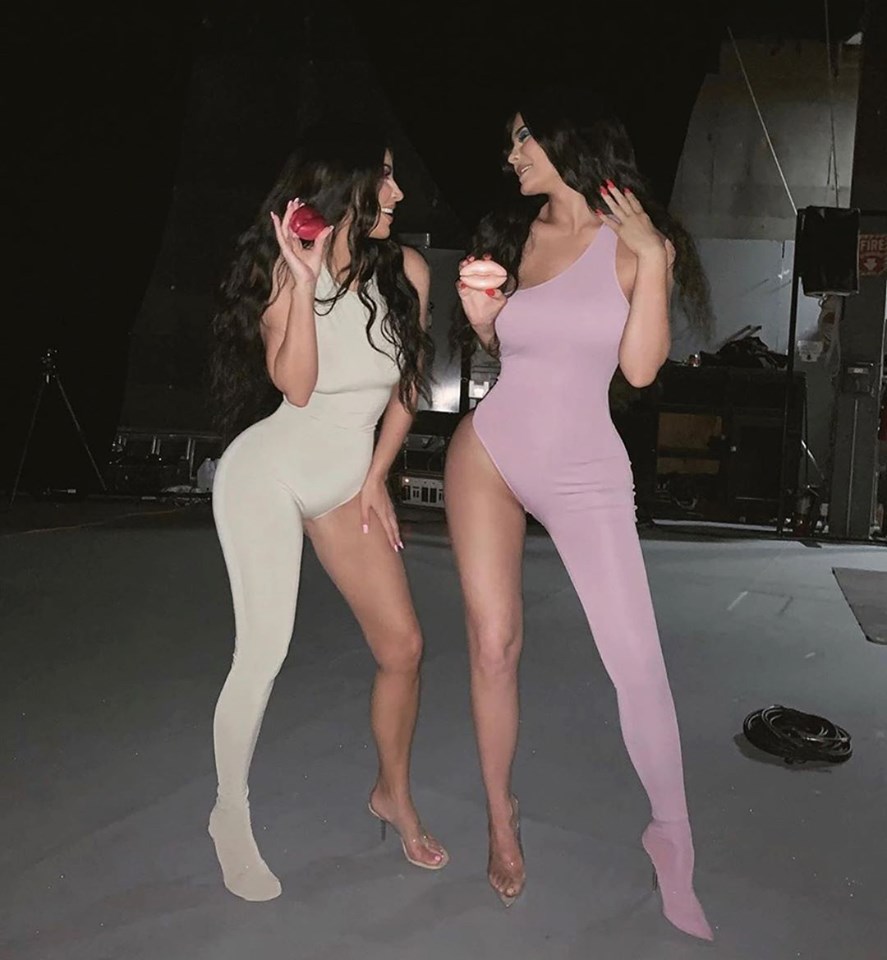 Với lợi thế về thân hình phồn thực, chị em nhà Kim đã biết cách gây sự chú ý với bộ bodysuit, lệch vai, phần thân dưới bên còn bên mật và táo dáng phô đường cong đồng hồ cát trứ danh khiến người xem không thể rời mắt.