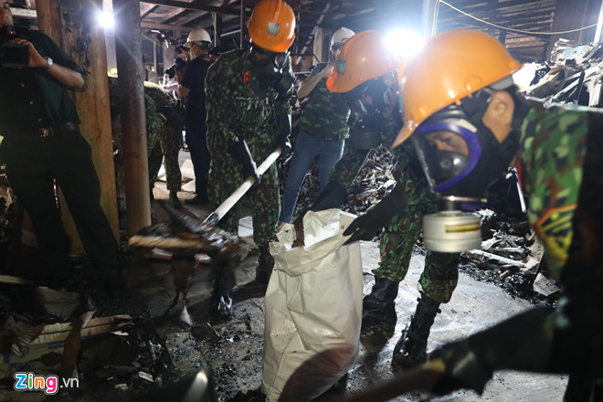 Trước đó, chiều 12/9, Binh chủng Hóa học đã đến hiện trường vụ cháy quan trắc, trinh sát toàn bộ khu vực nhà máy và lân cận, thu gom hàng tấn phế thải độc hại trên diện tích khoảng 300 m2.