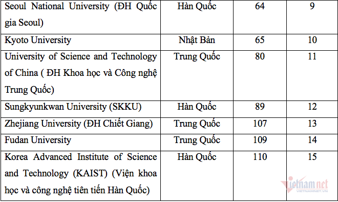 Còn Trường ĐH Bách khoa Hà Nội có chỉ số về trích dẫn khoa học cao nhất.
