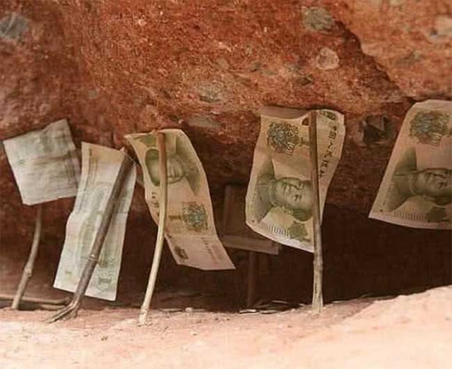 Người dân Trung Quốc tin rằng đó là những nơi linh thiêng và rất nhiều tiền cắm ở dưới đất lên tới vài chục triệu nhân dân tệ nhưng tuyệt nhiên không ai dám lấy một tờ.