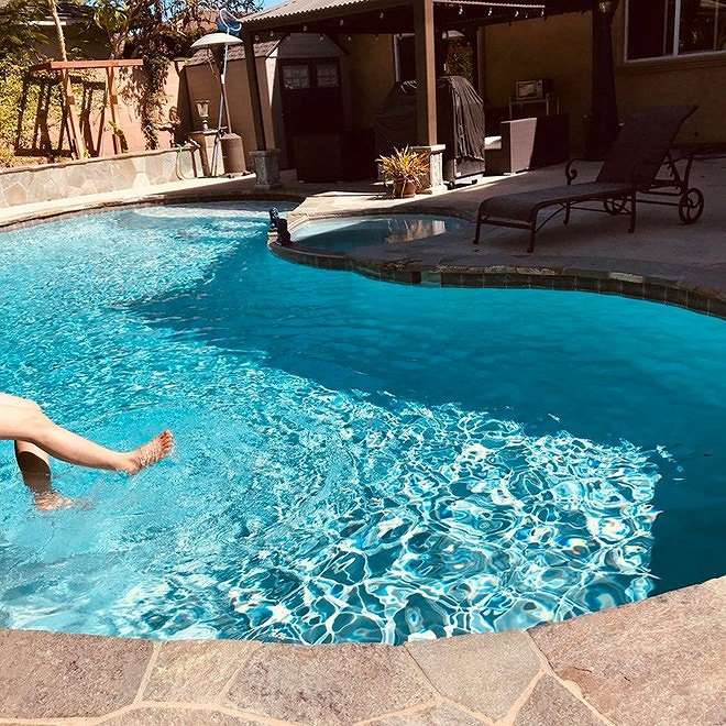 Bể bơi phía bên ngoài của ngôi nhà với vew cực đẹp. Đây là không gian lý tưởng để 2 vợ chồng nghỉ ngơi, được biết cưới nhau nhiều năm vẫn chưa có con, trong năm nay Minh Tuyết và chồng đã lên kế hoạch để đón con đầu lòng.