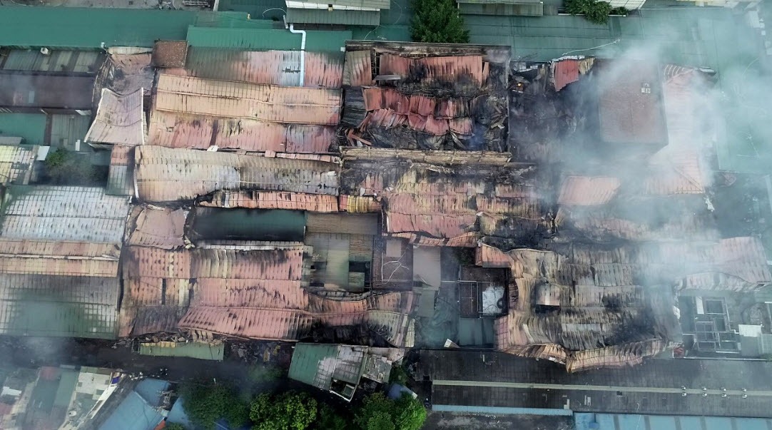 Hiện trường xảy ra vụ cháy nhà máy phích nước bóng đèn Rạng Đông.