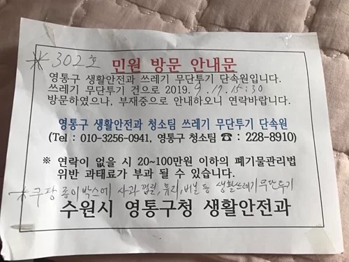 Không phân loại rác từ nhà đã khiến cô gái Việt ở Hàn gặp rắc rối lớn. Đi làm về hôm 17/9, Hương Nguyễn, đang sống ở thành phố Suwon, cách Seoul 30 km, thấy trên cửa dán tờ thông báo cô vứt rác bừa bãi.