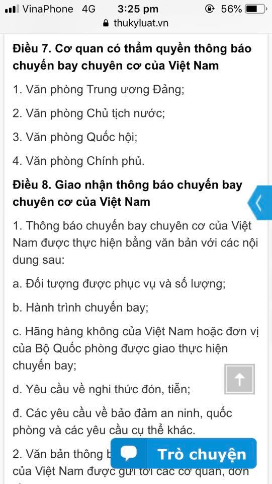 Điều 15 quy định rõ “đối tượng đặc biệt khác” quá giang “tứ trụ” tại điều 5 là “đoàn doanh nghiệp” hoặc “báo chí” đi cùng chuyến bay chuyên cơ.