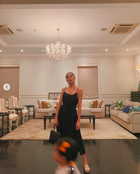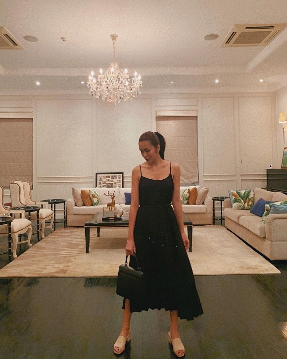 Trên instagram cá nhân của mình, Tăng Thanh Hà mới đây vừa đăng tải hình ảnh diện đầm đen thần thái khoe vóc dáng thon gọn trong phòng khách sang trọng của căn biệt thự dát vàng. Tăng Thanh Hà cho biết để có được những hình ảnh này, người đẹp đã phải khổ cực với hai đứa con tinh nghịch. Cụ thể, Tăng Thanh Hà chia sẻ: "Chụp được một tấm hình cũng khó lắm! Chúng nó cứ lởn vởn trước mặt như hai con cá mập".