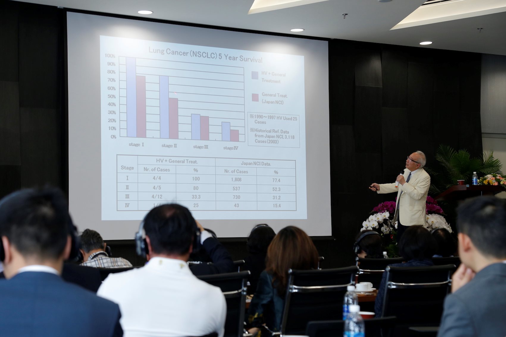 Tại hội thảo, TS.BS Kenichiro Hasumi, Chủ tịch phòng khám Shukokai, BV Hijirigaoca, Trung tâm chăm sóc sức khỏe người cao tuổi Hijiri-no-Sato, thuộc Viện Điện Hóa và ung thư Tokyo Nhật Bản báo cáo rằng, ông đã phát minh và chế tạo thành công hơn 30 loại vắc xin để phòng ngừa và điều trị ung thư bằng liệu pháp sử dụng miễn dịch của chính cơ thể.