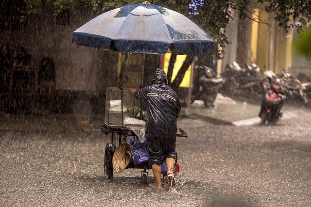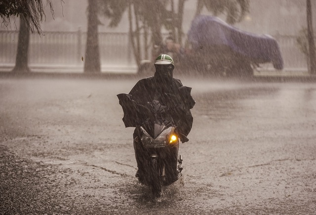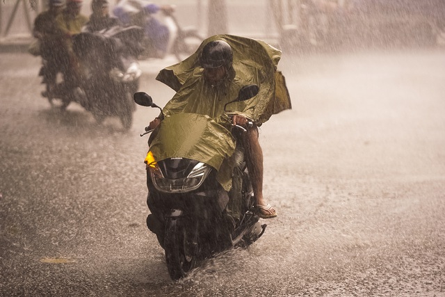 Nhiều người dân không thể di chuyển tiếp tục, phải tấp vào lề trú mưa