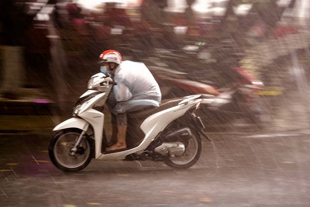Chiều qua 4/10, cơn mưa giông lớn bất ngờ trút xuống Sài Gòn vào đúng giờ tan tầm khiến người dân hết sức vất vả tìm đường về. Mưa lớn và kéo dài, các phương tiện gặp rất nhiều khó khăn trong việc di chuyển. Ngay cả người mặc áo mức cũng ướt sũng vì có gió giật.