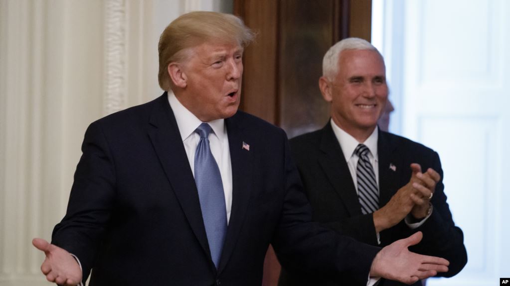 Tổng thống Donald Trump và Phó Tổng thống Mike Pence đến dự một sự kiện của các nhà lãnh đạo da đen trẻ tại Nhà Trắng ở Washington, ngày 4 tháng 10, 2019.