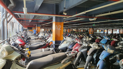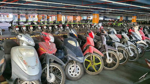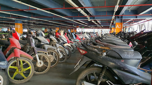 Những chiếc xe này đang được đơn vị giữ xe của nhà ga quốc nội sân bay Tân Sơn Nhất là Công ty Cổ phần đầu tư TCP xếp thành 3 dãy tại lầu 5 của bãi giữ xe với đủ loại, từ cà tàng đến tay ga đắt tiền.