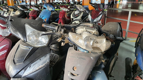 Hàng trăm xe máy gửi ở bãi xe của Cảng hàng không quốc tế Tân Sơn Nhất mà không ai đến lấy. Xe đến nay đã quá hạn gửi, xe máy bụi, bung hộp đèn, xẹp lốp, rơi biển số,…...