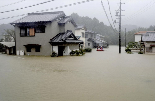Mưa lớn làm ngập khu dân cư ở Ise, miền trung Nhật Bản. (Ảnh: Kyodo/Reuters)