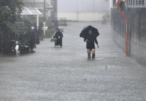 Đường phố ngập do mưa lớn ở Shizuoka. (Ảnh: Kyodo/Reuters)