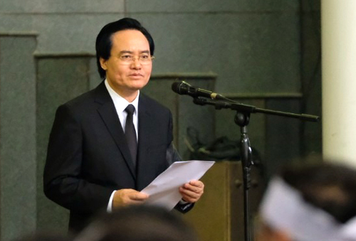 Ông Phùng Xuân Nhạ đọc điếu văn trong lễ truy điệu. Ảnh: Lê Linh