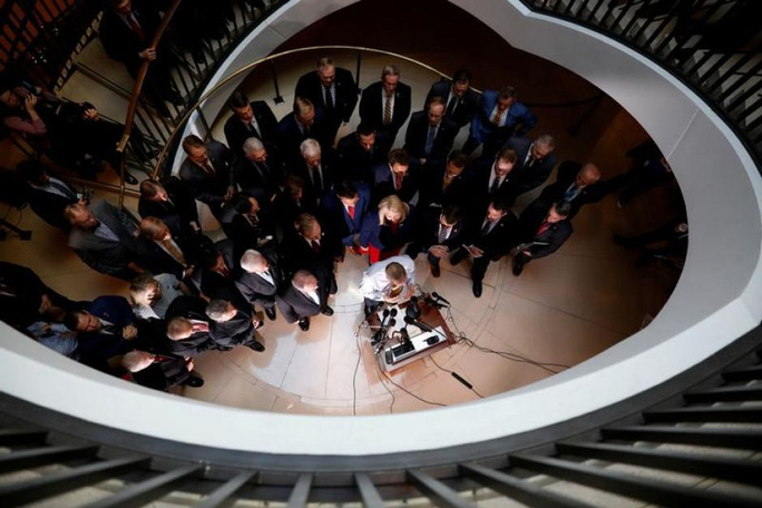 Các thành viên đảng Cộng hòa tập trung tại cuộc họp báo tại quốc hội. Ảnh: Reuters