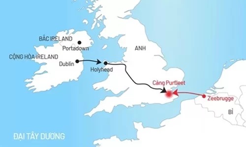 Tuyến đường xe container chở 39 người vào Anh