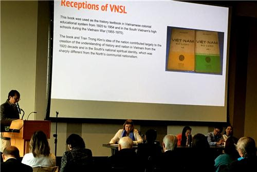 Diễn giả Nguyễn Lương Hải Khôi đang thuyết trình về Việt Nam sử lược của cụ Trần Trọng Kim.